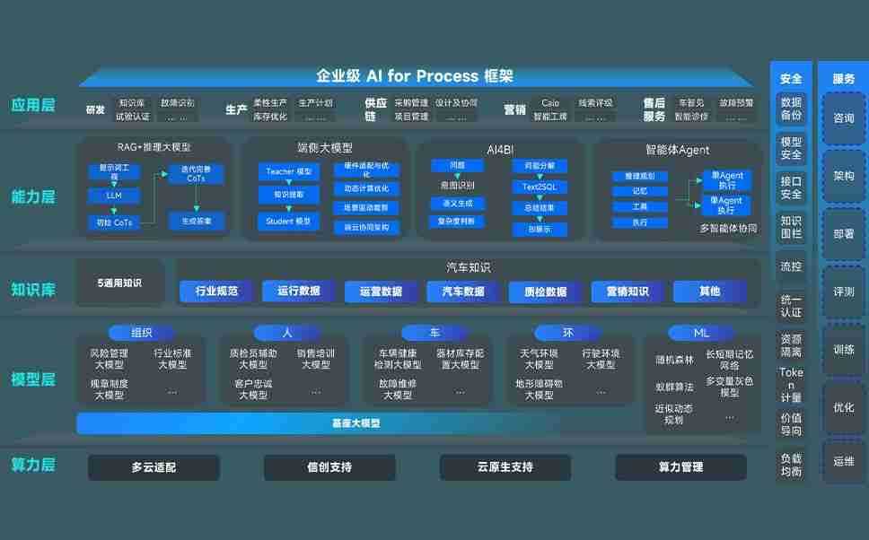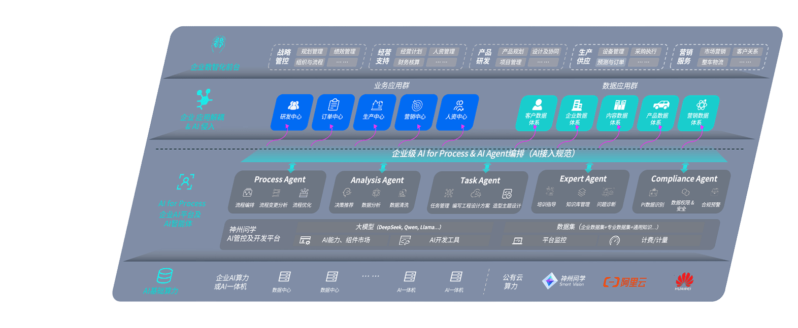 端到端的一站式AI工作空间深度融合了从企业战略规划到日常经营的全流程业务板块,,定向解决车企内部领域多、、、、部门多、、、、链条长、、场景碎片化等难题,,,,支持车企快速构建以AI为核心的生产力写作体系,,实现任务执行与AI能力的无缝集成与交互